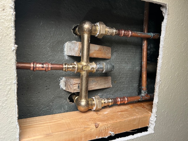 We ended up replacing the old and now discontinued, Kohler tub, shower valve body with a new Gerber valve body. The unit came with new tub handles and tub, spout and showerhead. Now the client doesn’t have any more drips coming out of the tub spout.