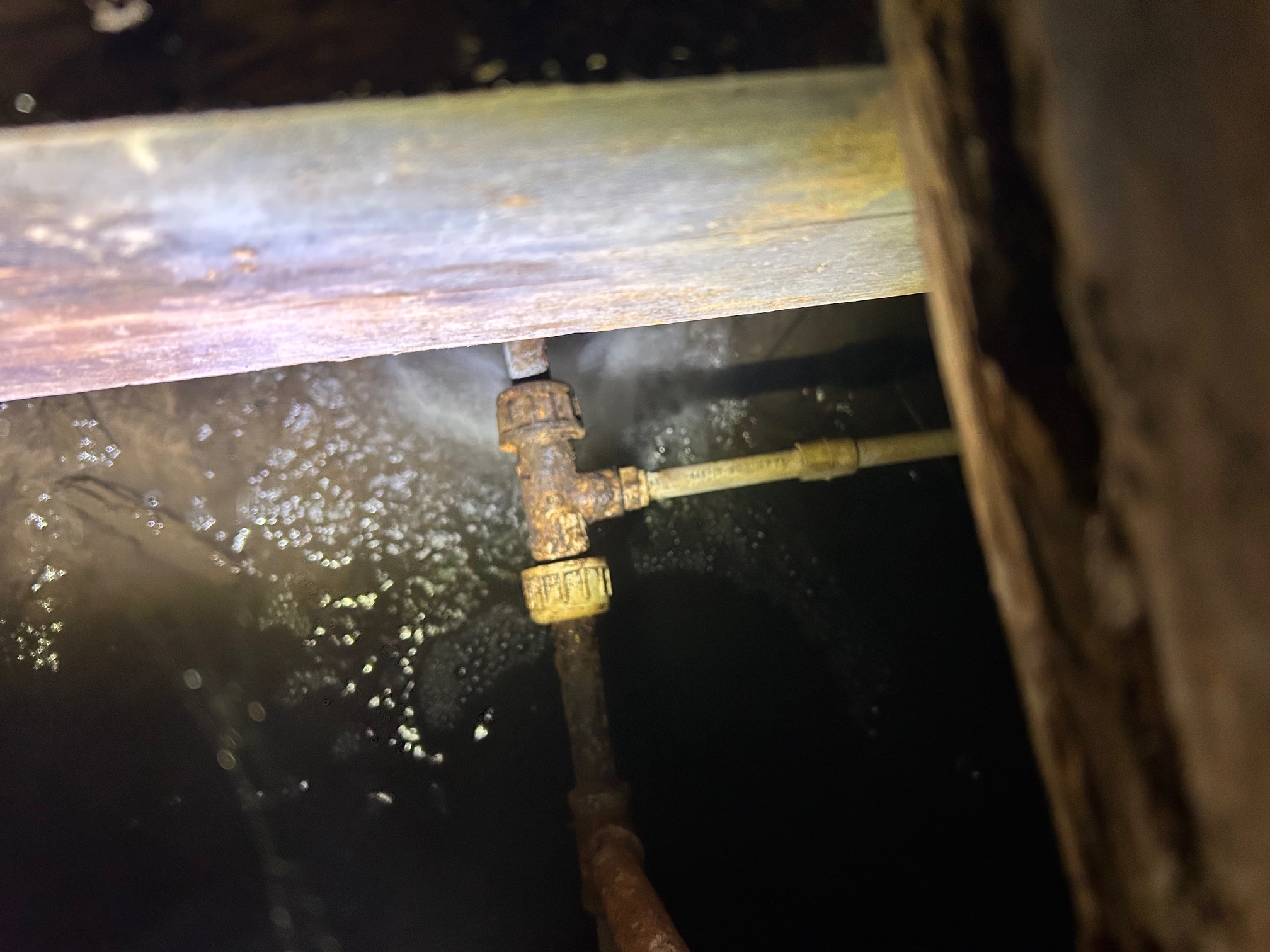 We noticed recently that a water leak under a 70-year-old home in Lafayette with a galvanized water pipe had several small repairs over the years.